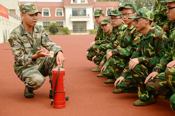 9月20日,合肥学院开展2015级新生消防演习。所有新生在教官们的带领下,分批次来到学校二区田径场,学习如何使用灭火器。