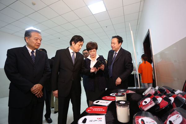 在展出现场,台湾两岸和平发展联合会主席蓝博洲、铭传大学校长李铨、台湾抗日志士亲属协进会创会会长林光辉、海峡两岸关系协会副会长孙亚夫、安徽省政府副省长谢广祥、安徽省台办副主任汪泗淇、合肥市委副书记凌云、合肥学院党委书记蔡敬民、合肥学院校长张文兵等认真参观了学生们的设计作品。