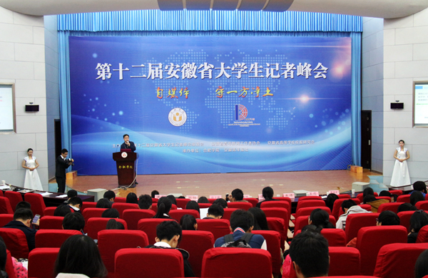 不忘初心,方得始终;念念不忘,必有回响。2015年11月8日,迎来了我国第十六个记者节,同时也迎来了由安徽省大学生记者峰会组委会、安徽省青年新闻工作者协会和安徽省高等学校校报研究会联合主办,合肥学院、安徽青年报社联合承办的第十二届安徽省大学生记者峰会。来自全省60余所高校的400余位校媒记者齐聚南艳湖畔,围绕“自媒体,守一方净土”这一主题,在我校二区图书馆学术报告厅,共同探讨新形势下的校媒发展之路。