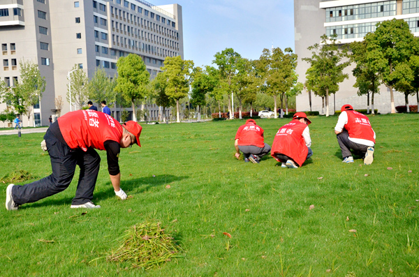 清除绿芜 美化校园 我校开展“爱校护校”志愿除草活动