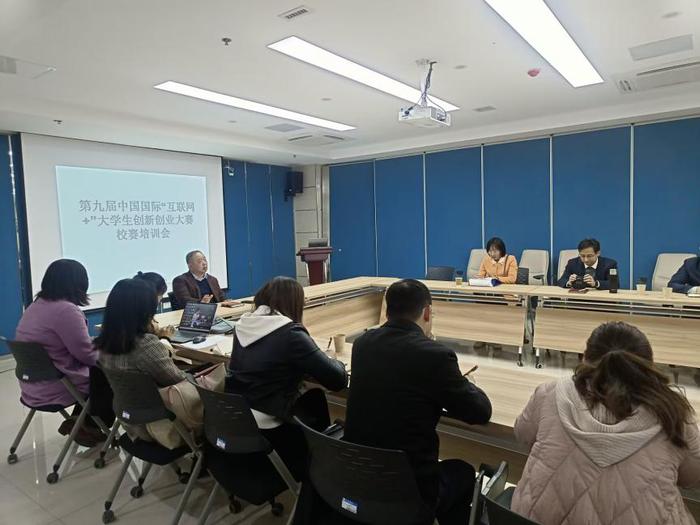 创新创业教育处处长董承军主持会议,回顾了前八届“互联网+”大赛参赛情况、我校取得的成绩,展望了下一步努力方向。他表示,本次培训会旨在调动各二级学院师生的参赛积极性,创新创业教育处将全力做好比赛的组织和服务工作,预祝我校在第九届“互联网+”大赛中取得更加优异的成绩。