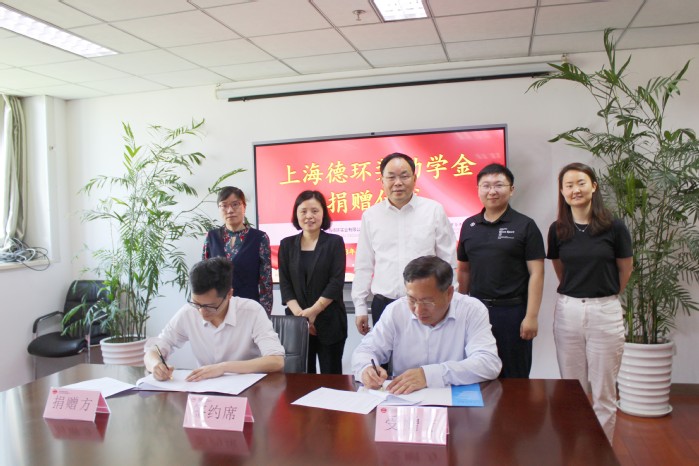 捐赠仪式上,双方签订捐赠协议。陈俊代表上海德环实业有限公司向基金会递送捐赠支票。何世昆代表基金会向上海德环实业有限公司颁发捐赠证书并赠送基金会宣传用品。
