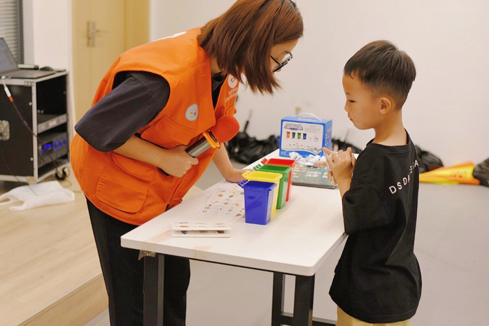 为传播环保理念,志愿者开设“绿色课堂”,播放动画视频,用通俗易懂的语言帮助小朋友们理解垃圾分类的相关知识。现场举办了模拟垃圾分类游戏,小朋友们踊跃参与,将写有各种垃圾名称的纸条投放到对应的教具里。同时,志愿者们还通过走访调研,向学生家长讲解宣传垃圾分类知识,营造共建共享绿色家园的良好氛围。