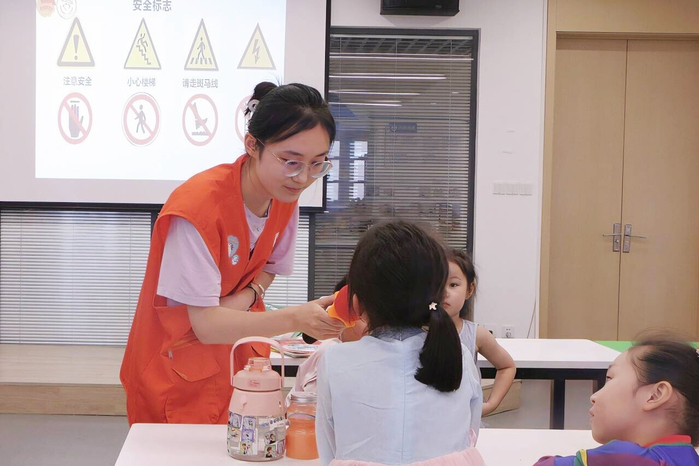 夏季是溺水高发期,为增强安全防范意识、提高紧急避险能力,志愿者开设了主题为消防安全、防震减灾、溺水救援的安全教育课,通过案例分析、游戏互动、安全演练,使小朋友们认识了安全标志,了解了紧急逃生的技巧,树立了高度的安全意识。“夏天天气炎热,可以去河边洗澡吗?”志愿者循循善诱,孩子们在一问一答中很快熟悉了夏日防溺“六不准”口诀。